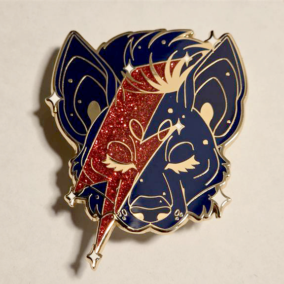 Our premium hard enamel pins are approximately 2.5” at their longest edge, and feature gold metal with art by Eevachu, Caustic Canine & Onix Angel. Some include pearl & glitter fills as well!